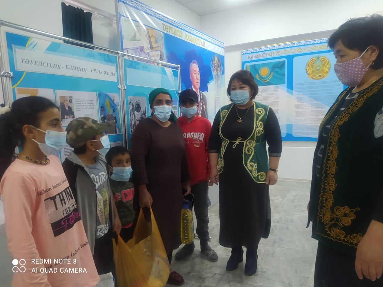 Дана халқымыз  «жылуы  жоқ  жүрек –құр кеуде » - деп   ұрпағын қайырымдылық пен  мейірімділікке тәрбиелеген. Жақсылыққа ұмтылған жан алдымен  қайырымдылық  жасайды. Біздің ауданымызда  мейрімді, жанашыр жандар көп табылады.         Солардың   бірі, мұражай директоры   Берденова  Аида Советхановна. 2020-2021 оқу жылының 8 сәуірі күні  Әл –Фараби орта мектебінің 1 көп балалы отбасына демеушілік көмек көрсетілді. Көмек сомасы 13000 теңге  көлемінде,  осы   аталған сома көп балалы өтбасына азық   - тулік сатып алып берді. Әл –Фараби орта мектебінің әкімшілігі және ата  - аналар тарапынан шексіз алғысымызды білдіреміз. Көп  рахмет !
