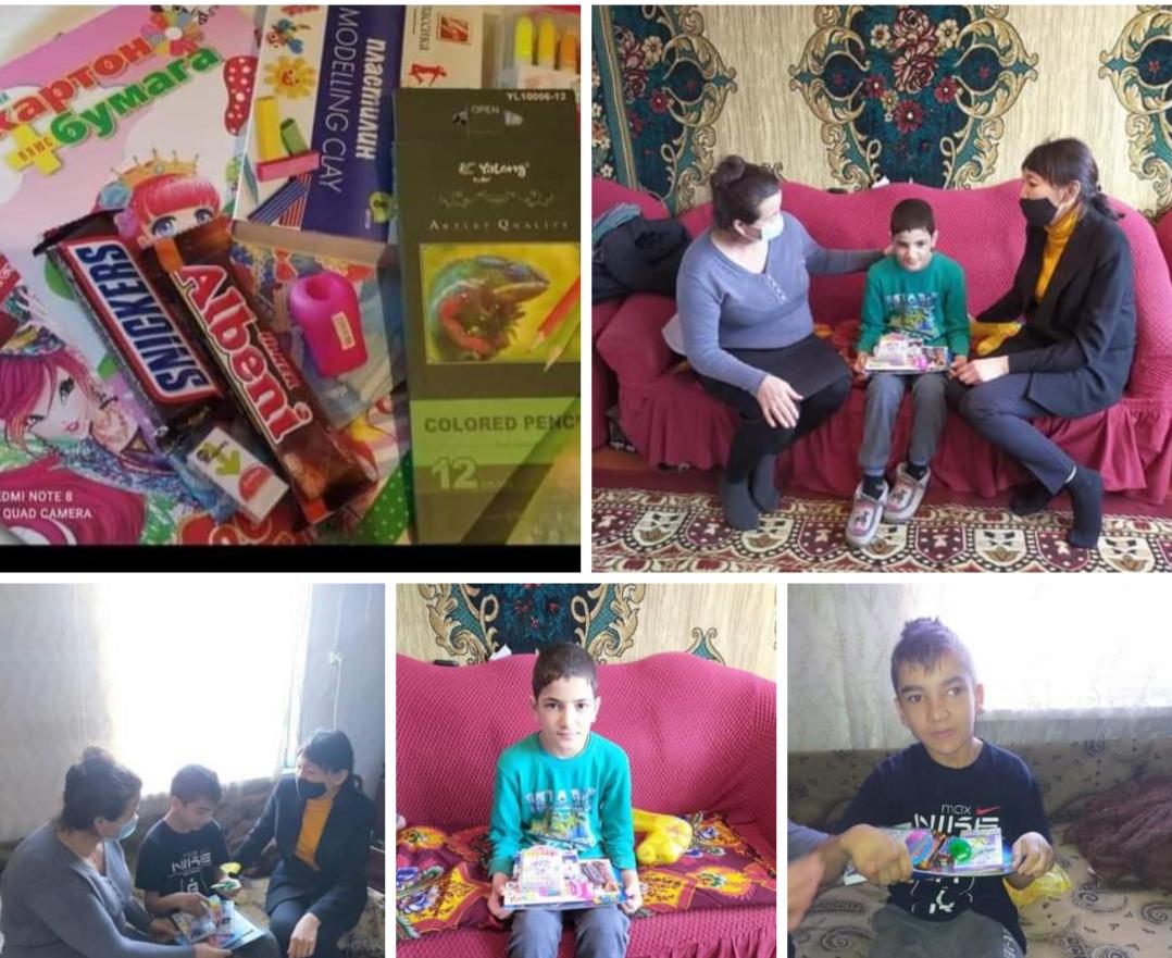 "Психологиялық кеңес беру" айлығы аясында, аудан психологтарының демеушілігімен ерекше оқытуды қажет ететін балаларға (үйден оқытылатын) көмек көрсетілді.(кеңсе тауарлары мен тәттілер)