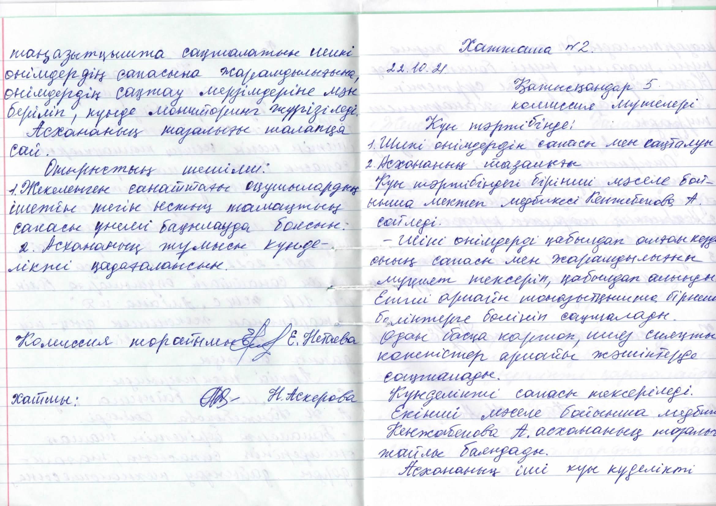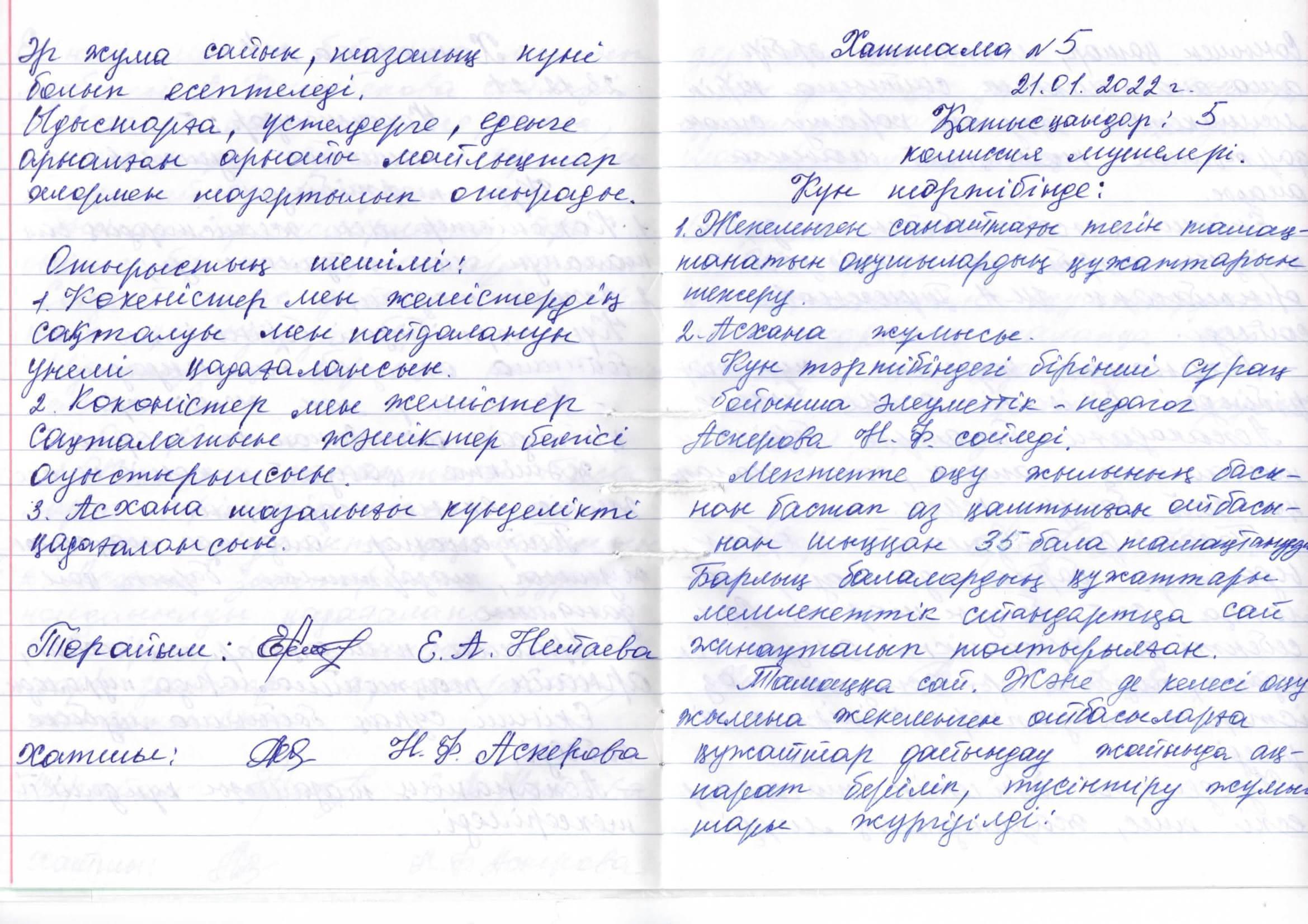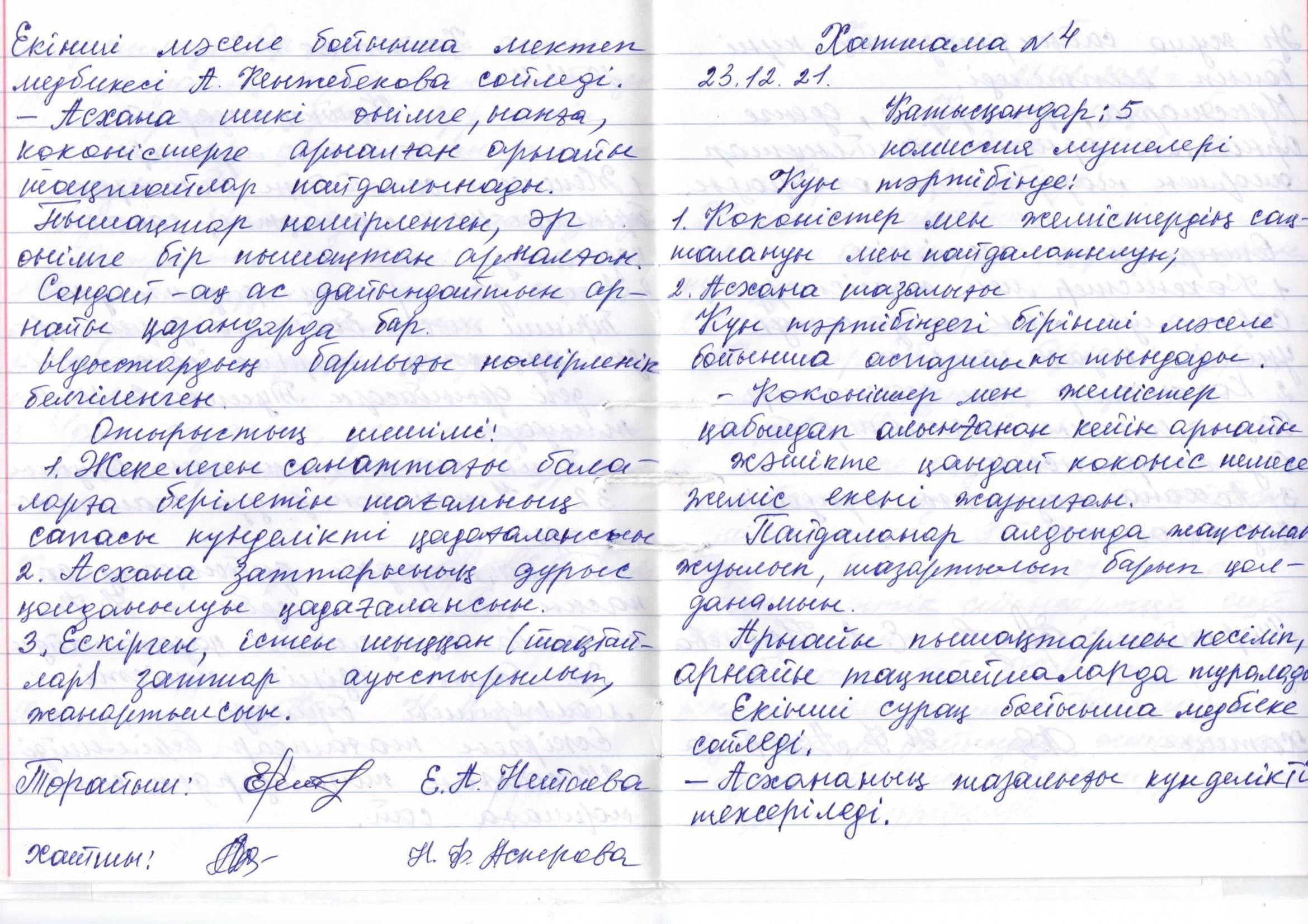 Мониторинг комиссия отырыстарының хаттамалары » Әл-Фараби атындағы орта мектеп