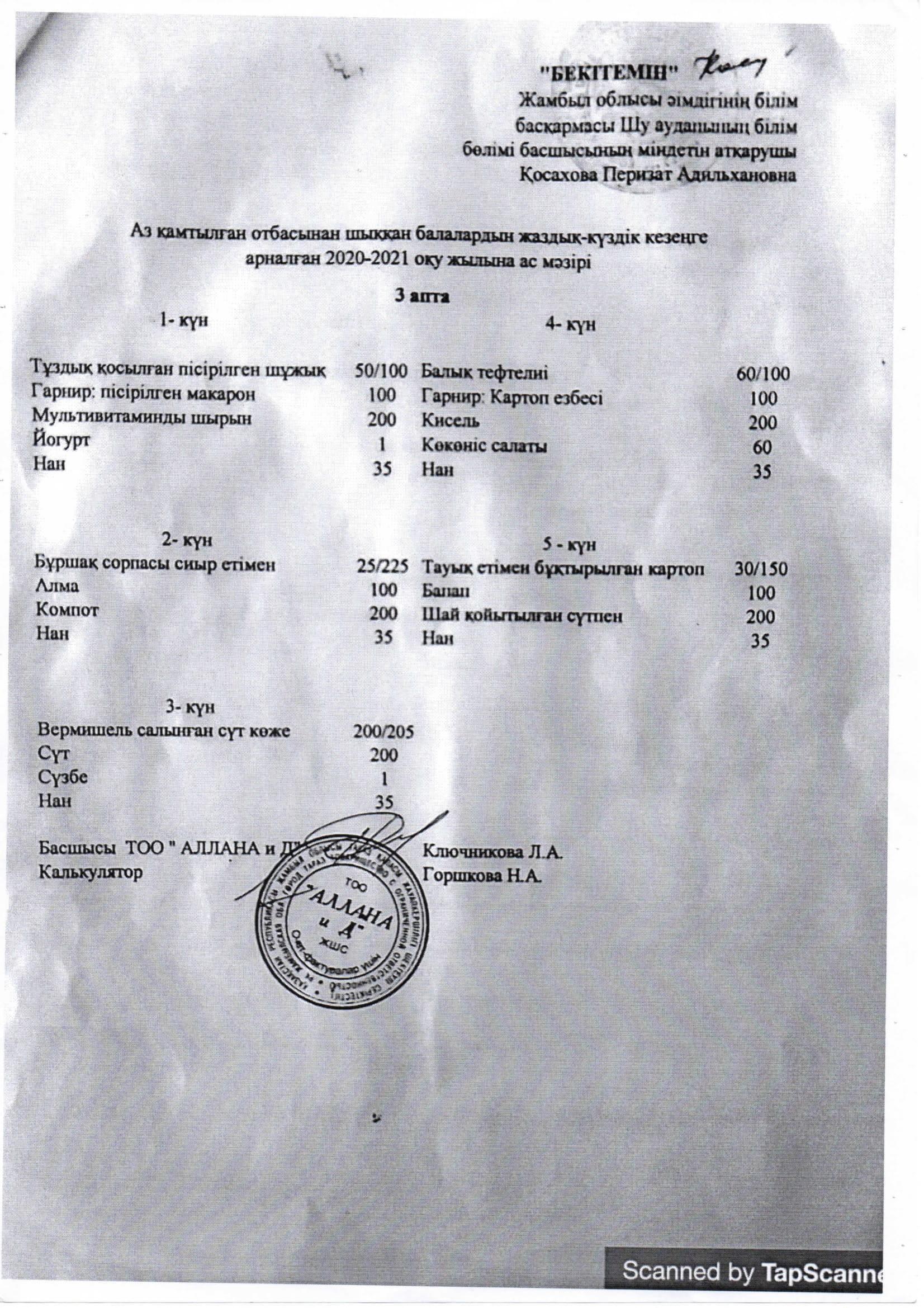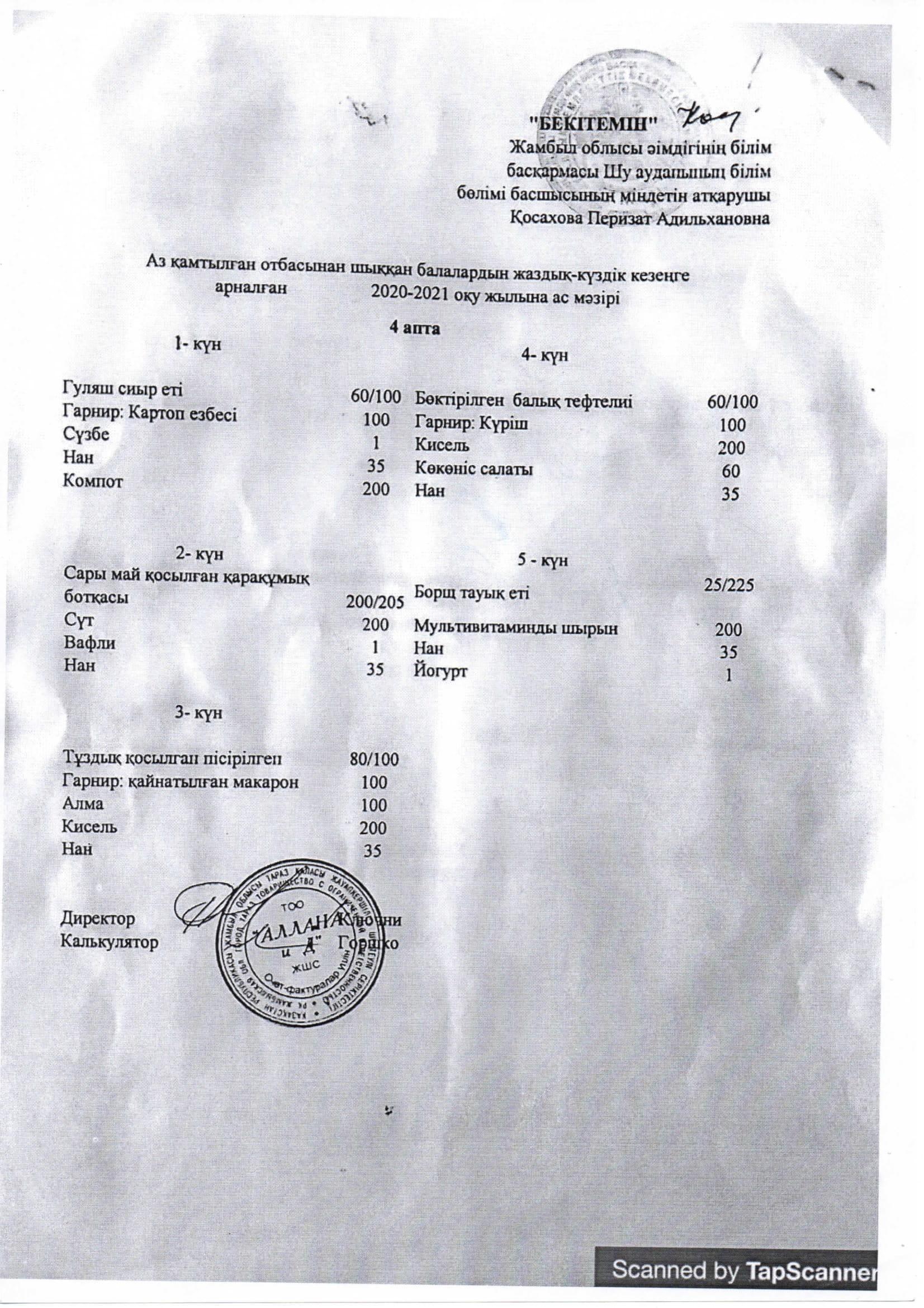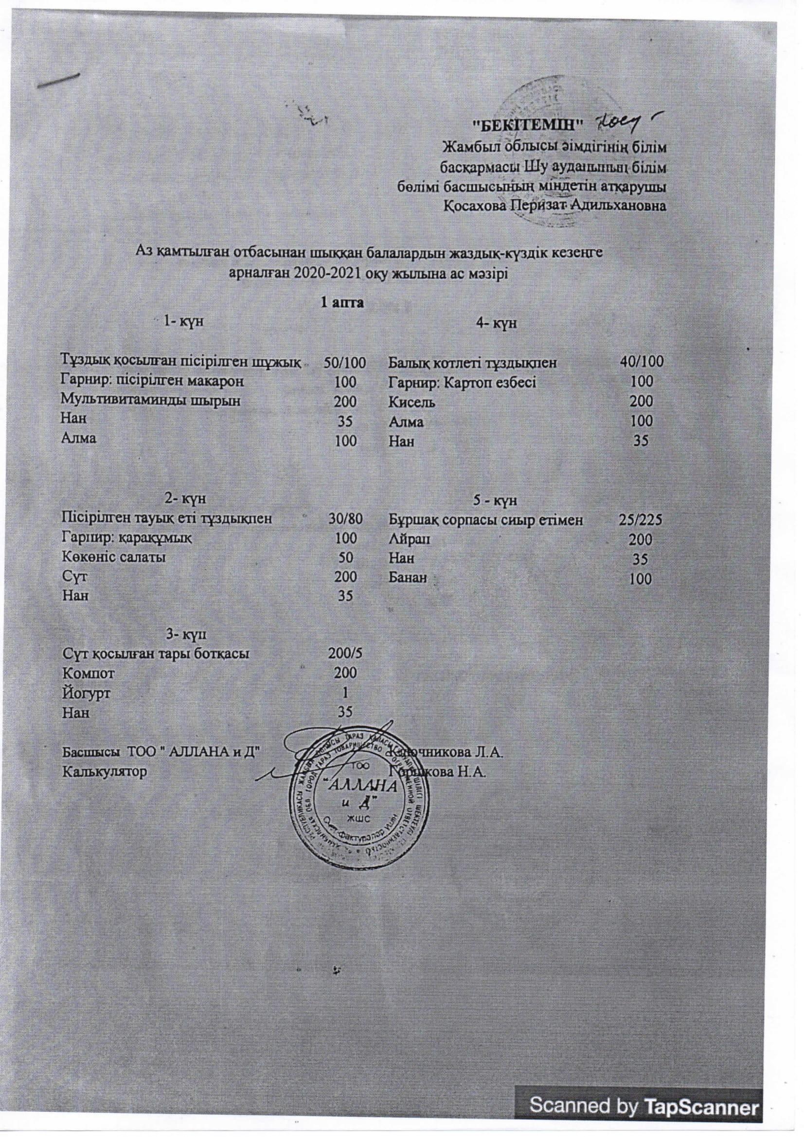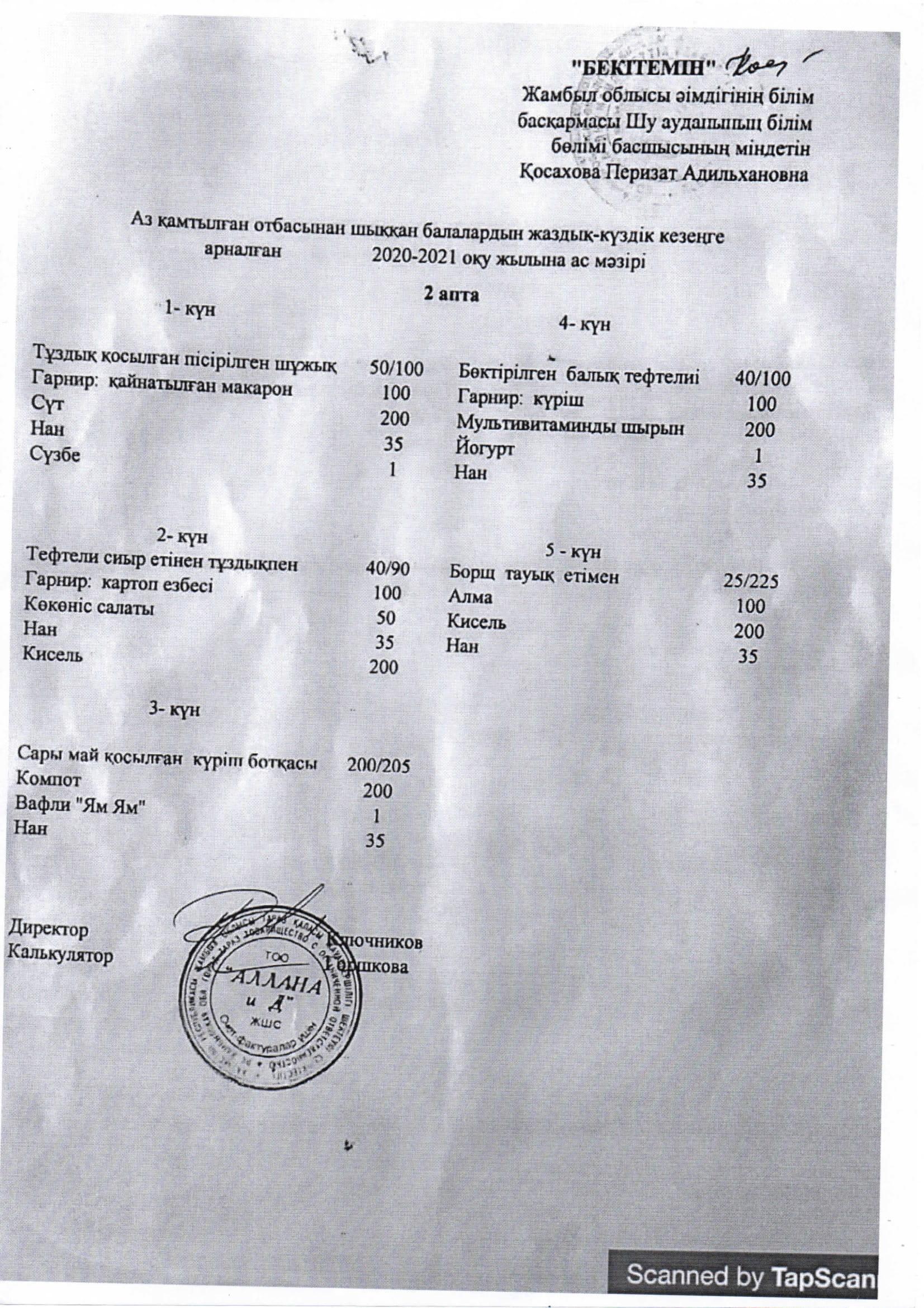 18 сентябрь 2020 0 1 2 3 4 5 Аз қамтылған отбасынан шыққан балалардың жаздық-күздік кезеңге арналған 2020-2021 оқу жылна ас мәзірі