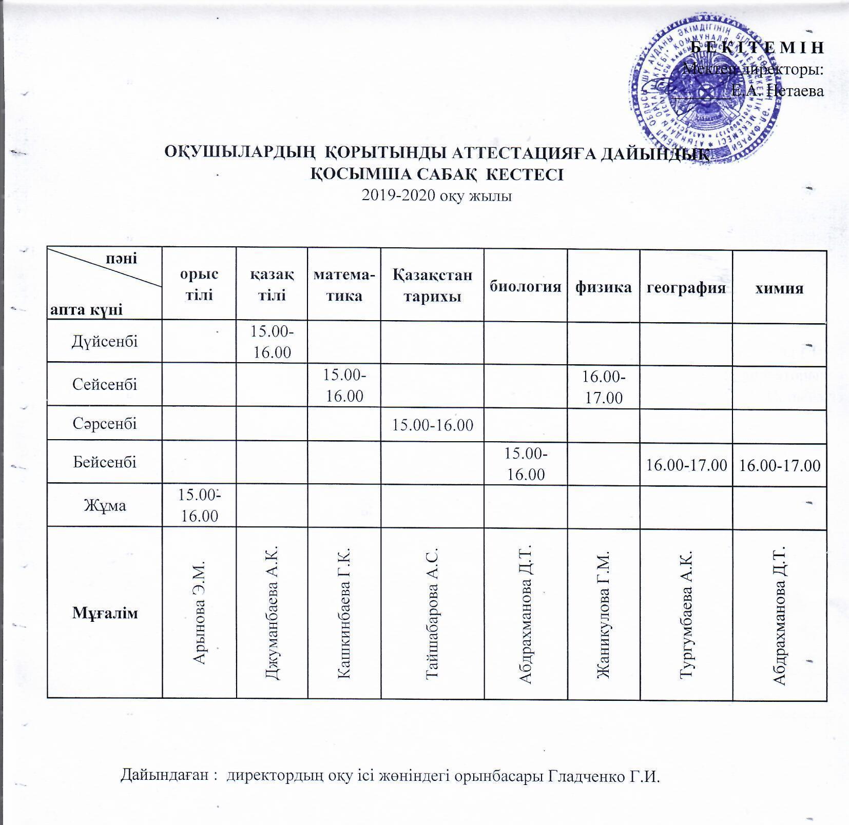 » » Оқушылардың қорытынды аттестаттауға дайындық қосымша сабақ кестесі